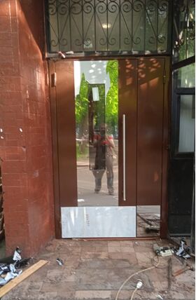 Входная дверь в парадную с стеклом+нержавейка