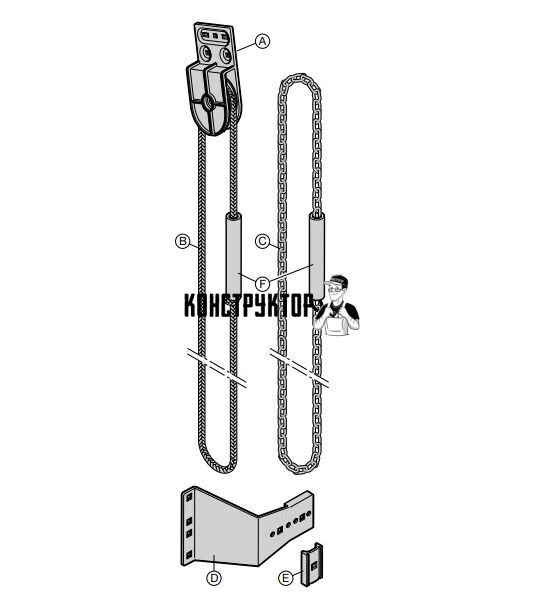 3045668 Ручная цепная тяга с редуктором, в сборе, круглая стальная цепь (E - Круглая стальная цепь A5 –DIN 7
