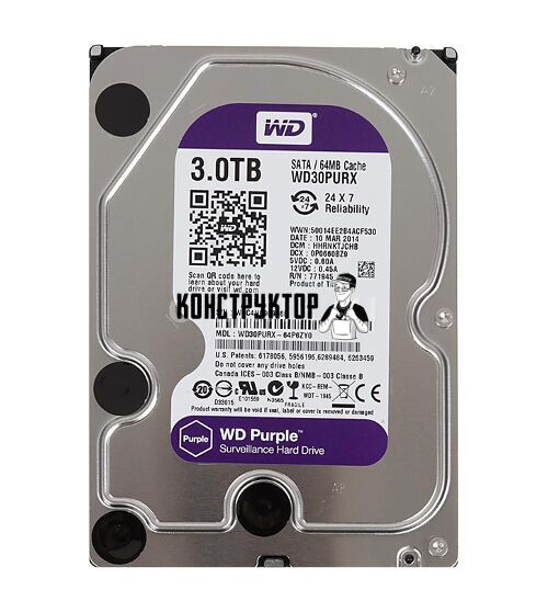 WD30PURZ – жесткий диск, разработан специально для использования в системах видеонаблюдения и рассчитан на беспрерывную работу 24 часа в сутки в течение более чем 100 лет, ведь заявленное производителем время наработки на отказ составляет 1000000 часов.