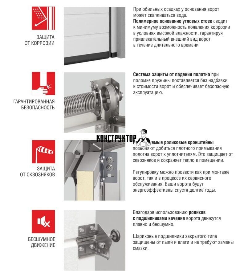 Особенности ворот Alutech серии TREND: -панели толщиной 45 мм.; -комплектующие из оцинкованной стали; -возможность выдвижения рамы в проем; -торсионные пружины с ресурсом 25 000 циклов; -изготовление любого размера ворот с шагом 5 мм.; -5 рисунков панелей; -до 10 базовых цветов RAL и 3 цветов "под дерево" Современный дизайн, функциональность и привлекательная цена - лишь немногие преимущества, которыми обладают ворота Алютех Тренд. Линейка отличается удобством монтажа, а также имеет ряд отличительных особенностей, выгодно выделяющих ее на фоне остальных продуктов бренда. Замкнутый контур стальных листов Стальные листы, из которых состоят сэндвич-панели, соединяются системой, не допускающей расслоения панели под постоянным воздействием тепла, что неизбежно случилось бы при длительном нахождении ворот весь день находятся на солнце. Соединение листов выполняется в четыре слоя сверху и снизу с использованием саморезов, что гарантирует отсутствие провисаний и перекосов. Благодаря этому даже при монтаже оборудования темной окраски замкнутый контур обеспечит долговечность изделия при его эксплуатации. Защита от защемления пальцев Серия TREND соответствует стандарту безопасности EN 12604, который исключает возможность защемления пальцев. Любе положение секций не допускает травмирования их элементами. Надежное сцепление стальных листов с утепляющей пеной Использование прослойки из адгезионного лака позволяет достичь надежного сцепления стали с пеной. Даже под воздействием температуры наличие прослойки вероятность вздутия полотна или деформации панели равна нулю. Защита от коррозии Применение цинкового покрытия, а также наличие вспомогательного слоя грунтовки обеспечивает надежную защиту от разрушительного действия коррозии. Долговечное покрытие Для наружного покрытия панелей используются специальные полиуретановые красители, включающие полиамидные частицы. Такая краска не только сохраняет воротам их первозданный вид, но и увеличивает их резистентность коррозии и механическим поврежденям. Хорошая теплоизоляция К-т сопротивления теплоотдачи для оборудования серии TREND составляет 0,74 м? °C/Bт. Для сравнения - аналогичным параметром обладает кирпичная стена, имеющая толщину 55 см.